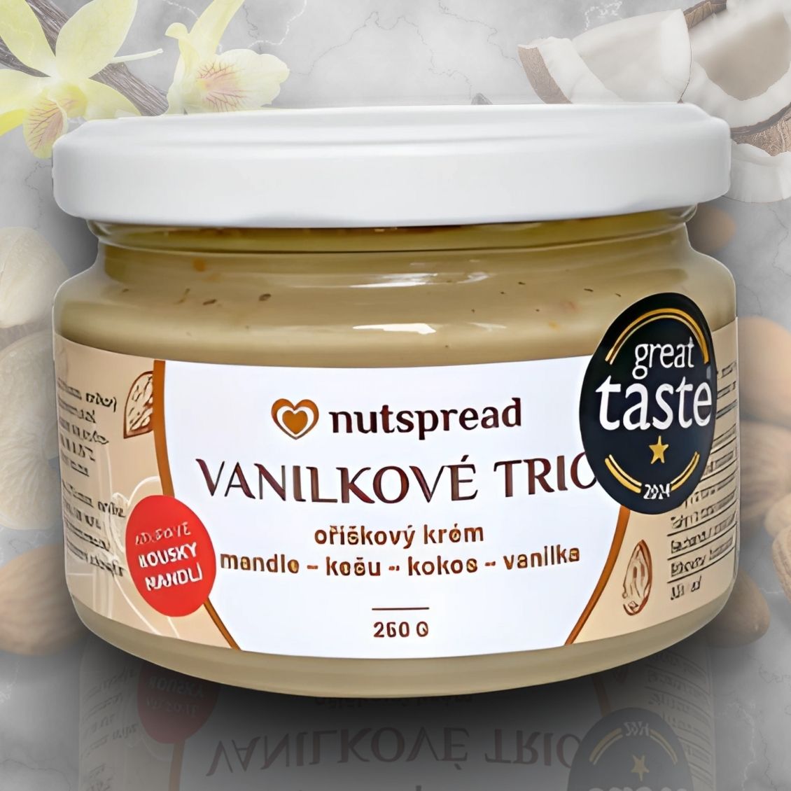 mandle. Tento krém lehce připomíná naše Křupavé Trio, díky vanilce je ovšem jemnější,