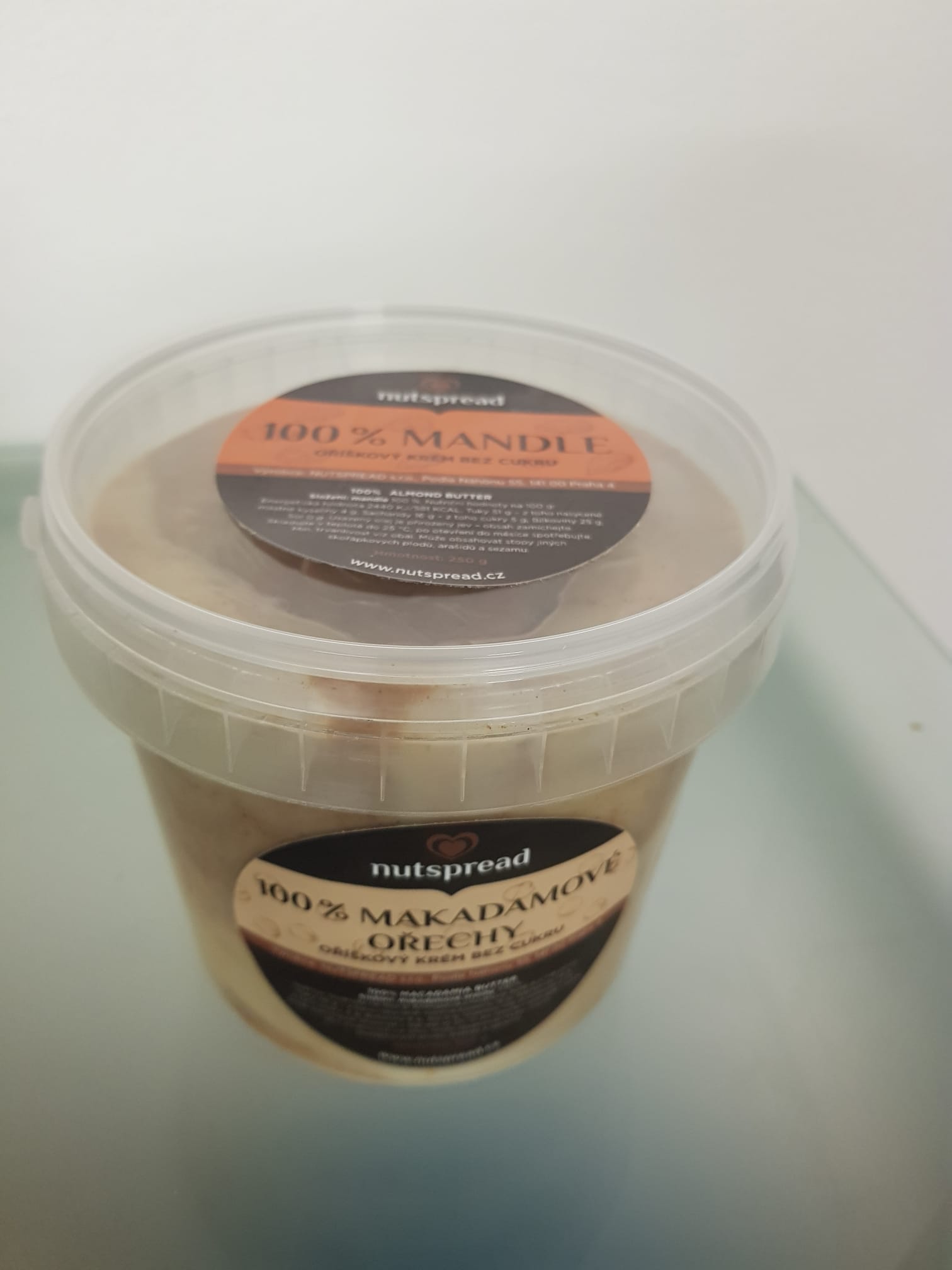 Mimořádná nabídka? Tady je: Jemný mandlový krém + Jemné Máslo z makadamových ořechů! Másla v poměru 50:50 a chuť na 100 % :-) Bez cukru, lepku a přídatných látek. Vysoký obsah proteinů, vhodné pro sportovce a vegany.