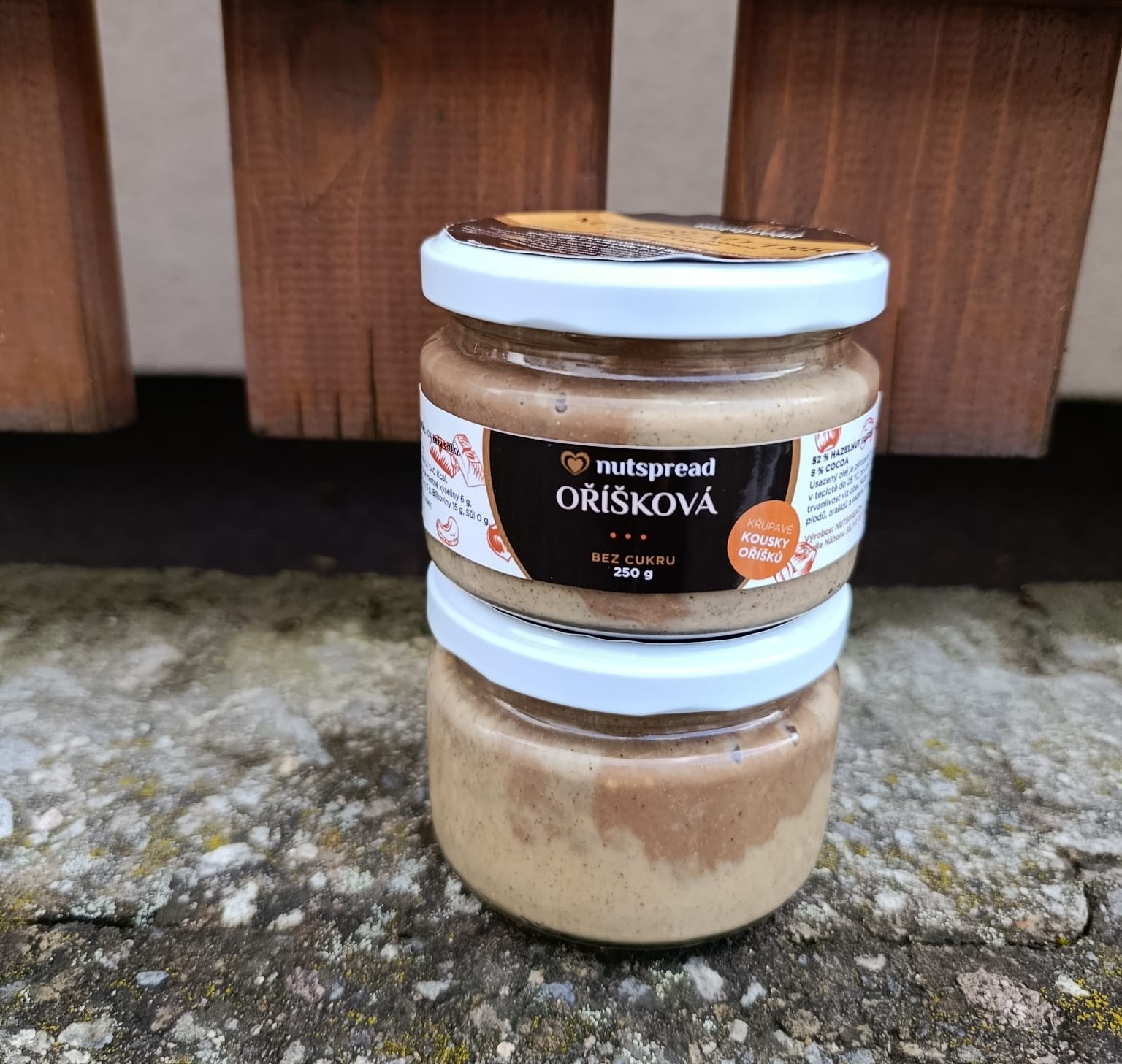Křupavý ořechový krém z lískových ořechů, kešu ořechů a kakaa a 100% krém z kešu, kokosu a mandlí. Bez cukru, lepku a přídatných látek. Vysoký obsah proteinů, vhodné pro sportovce a vegany.