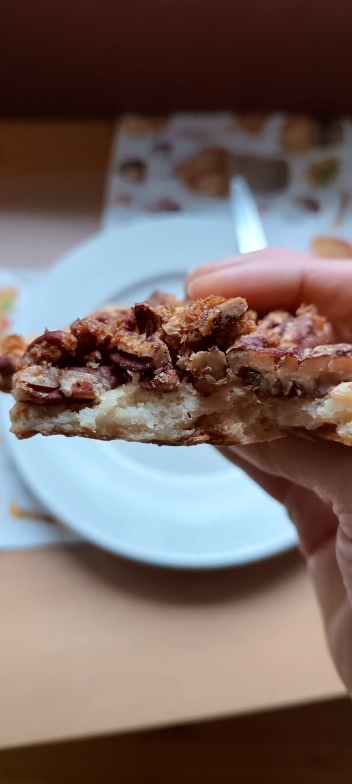 Z mouky, mléka, kypřícího prášku a tvarohu vypracujeme těsto a dáme v tenké vrstvě na pečicí papír. Na těsto dáme pekanové máslo, pocákáme javorovým sirupem, posypeme ořechy a dáme péct na 20 minut na 180 stupňů.
